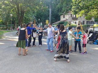 Ordubete eta erdiz aritu ziren jo eta ke umeak eta gurasoak Begoñaren aginduetara.Berbataldeetan parte hartzen duten guraso batzuk eta atzoko hitzorduaren berri izan zuten beste batzuk animatu ziren. Parkean zeuden familia bi ere gugana hurbildu eta informazio eskatu ziguten. Lehen urratsa emanda dago.Ea datorren urtean taldetxo bat sortzen dugun!
