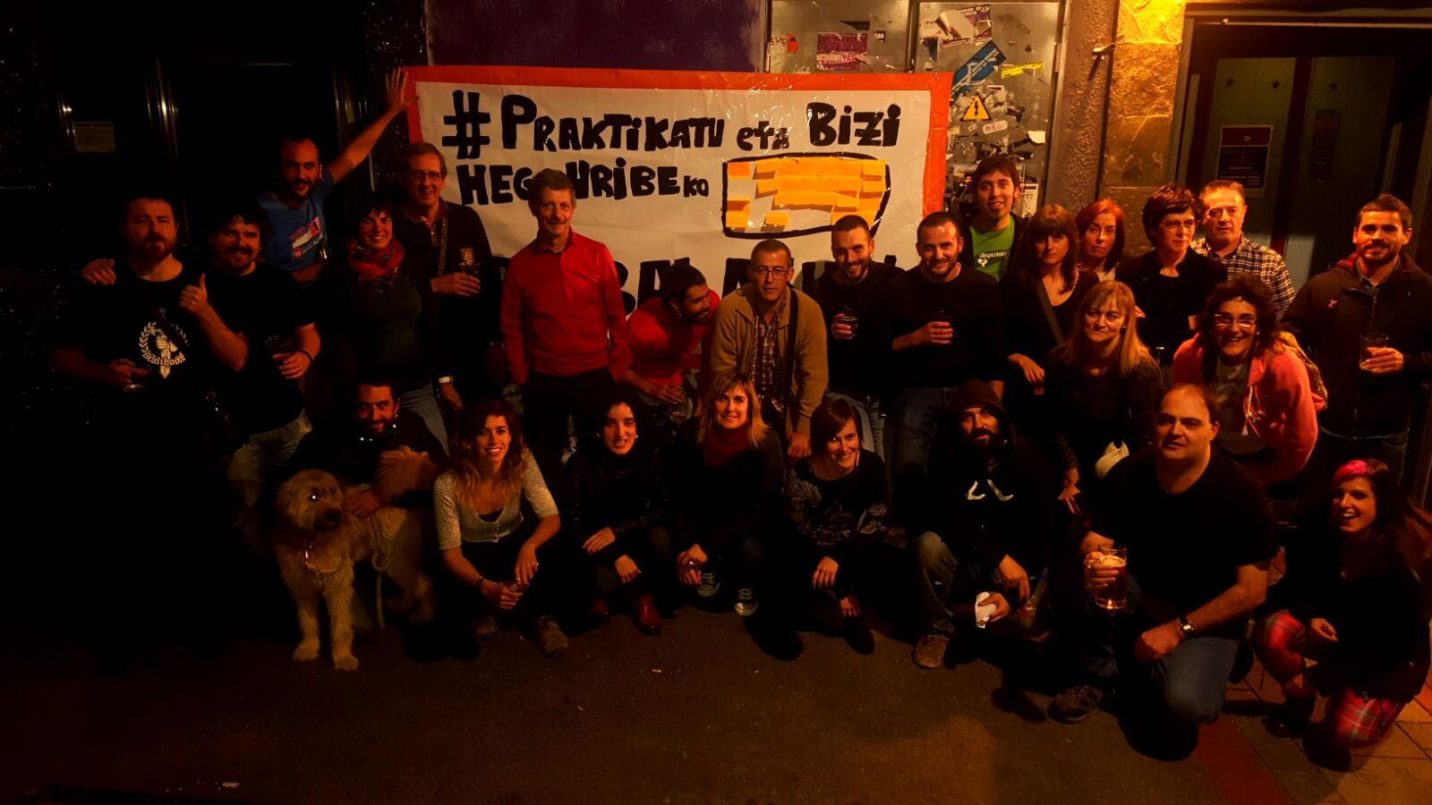 Festa Basaurin izan zen eta arrastiko 20etan hasi ginen poteoan Urduña tabernan. 60 lagun-edo elkartu ginen eta 21ak arte ibili ginen tabernaz taberna giroa berotzen, eta bidez batez argi erakusten euskararen alde jende asko dagoela Hego Uriben!